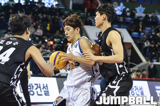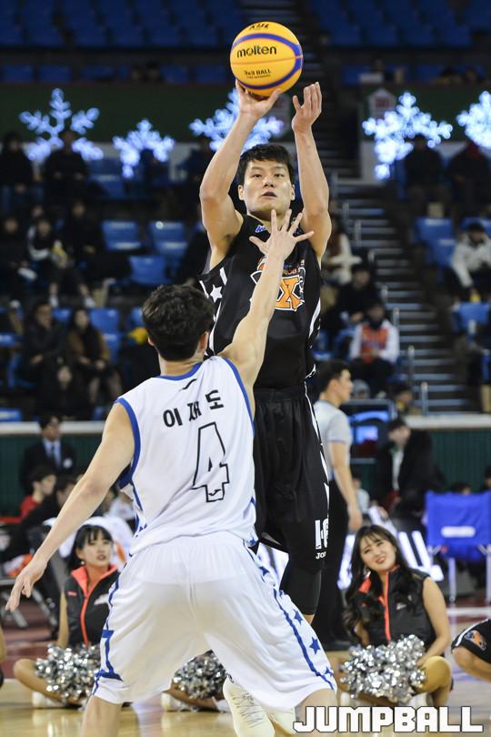 [점프볼=잠실학생체/홍기웅기자] 13일 잠실 학생체육관에서 '2017-2018 정관장 프로농구 올스타전' 1일차 이벤트로 KBL 3X3 대학 OB 최강전이 펼쳐졌다. 대학농구연맹 1부 12개 대학을 대표하는 출신 대학 프로선수들이 올스타 팀을 이뤄 우승을 가리는 3X3 농구 토너먼트 대회이다. 한양대 올스타와 성균관대 올스타가 첫번째 경기를 펼쳤다. '2017-2018 정관장 프로농구 올스타 1일차 3x3 대학 OB 최강전' 한양대-성균관대 경기화보.