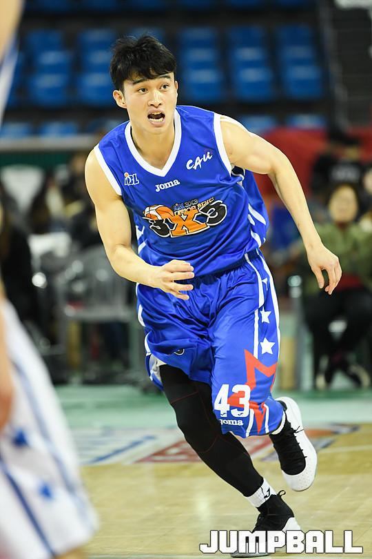 [점프볼=잠실학생체/유용우 기자] 13일 잠실 학생체육관에서 '2017-2018 정관장 프로농구 올스타전' 1일차 이벤트로 KBL 3X3 대학 OB 최강전이 펼쳐졌다. 대학농구연맹 1부 12개 대학을 대표하는 출신 대학 프로선수들이 올스타 팀을 이뤄 우승을 가리는 3X3 농구 토너먼트 대회이다. 중앙대와 한양대의 결승 경기, 중앙대 OB 이대성이 공을 향해 달려가고 있다.