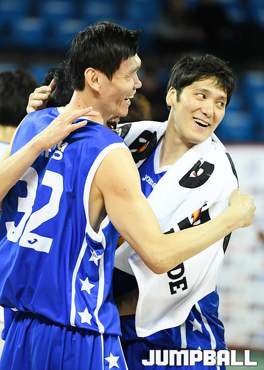 [점프볼=잠실학생체/유용우 기자] 13일 잠실 학생체육관에서 '2017-2018 정관장 프로농구 올스타전' 1일차 이벤트로 KBL 3X3 대학 OB 최강전이 펼쳐졌다. 대학농구연맹 1부 12개 대학을 대표하는 출신 대학 프로선수들이 올스타 팀을 이뤄 우승을 가리는 3X3 농구 토너먼트 대회이다. 중앙대와 한양대의 결승 경기, 중앙대 OB가 우승을 거머쥐며 기뻐하고 있다.