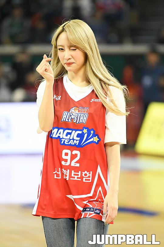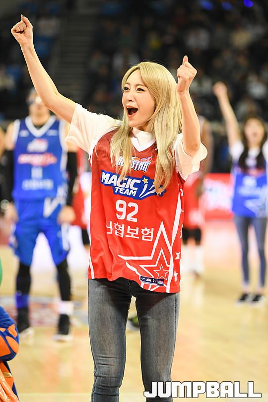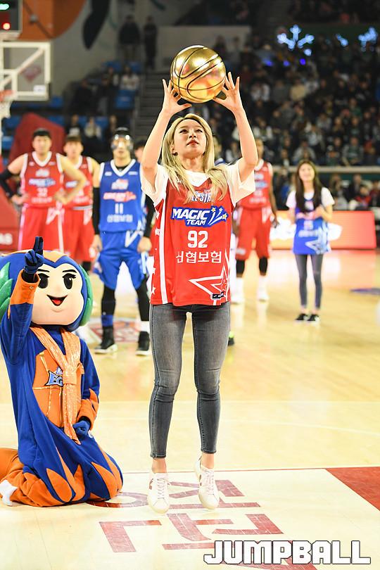 [점프볼=잠실학생체/유용우 기자] 14일 잠실 학생체육관에서 '2017-2018 정관장 프로농구 올스타전' 2일차, EXID 하니와 정화가 올스타전을 맞이해 시구, 시투를 하고 있다.