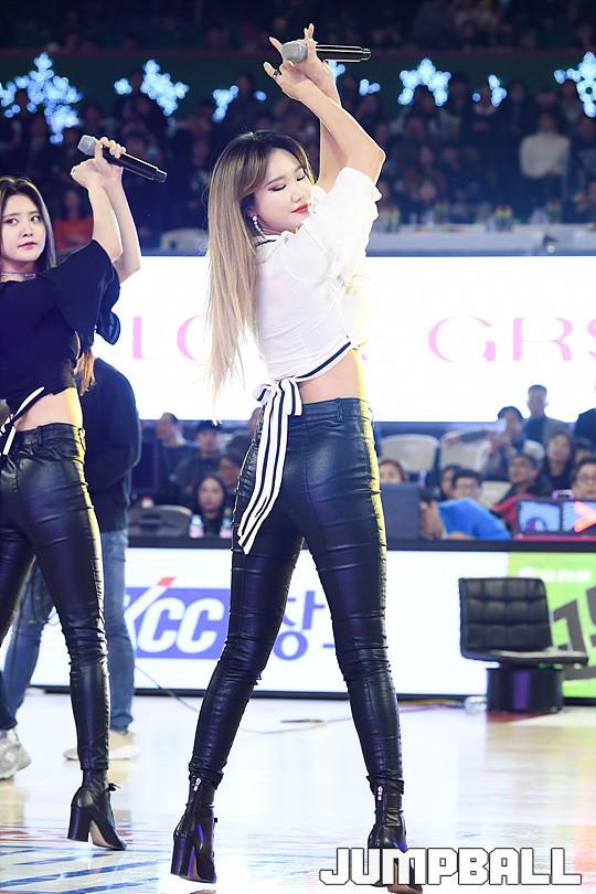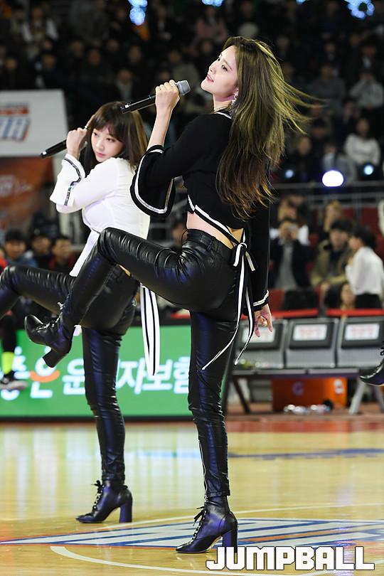 [점프볼=잠실학생체/유용우 기자] 14일 잠실 학생체육관에서 '2017-2018 정관장 프로농구 올스타전' 2일차, 하프타임에 EXID가 농구팬들에게 공연을 펼치고 있다.