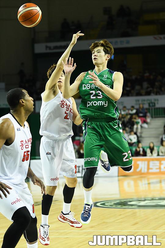 [점프볼=원주/유용우 기자] 16일 원주 종합체육관에서 열린 '2017-2018 정관장 프로농구' 원주 DB와 안양 KGC 인삼공사의 경기, DB 김영훈이 패스를 내주고 있다.