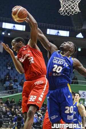 [점프볼=잠실/홍기웅 기자] 16일 잠실실내체육관에서 열린 '2017-2018 정관장 프로농구' 서울 삼성과 서울 SK의 경기. 삼성 리카르도 라틀리프가 외곽 슛을 던지고 있다.