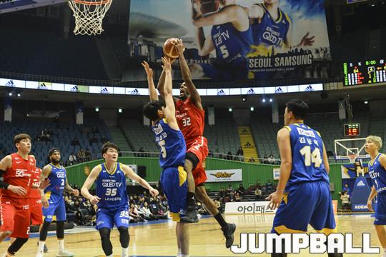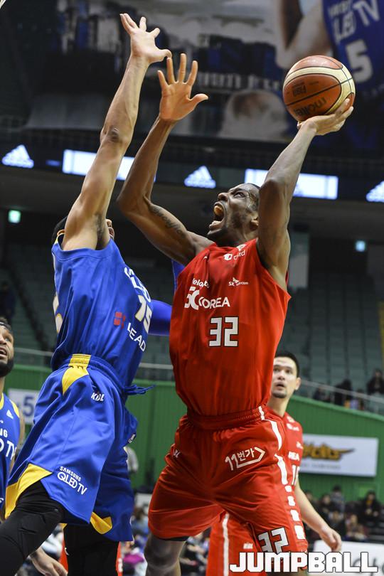 [점프볼=잠실/홍기웅 기자] 16일 잠실실내체육관에서 열린 '2017-2018 정관장 프로농구' 서울 삼성과 서울 SK의 경기에서 SK는 연장전 끝에 최준용과 애런 헤인즈의 활약으로 삼성을 이기고 2위에 0.5게임차로 다시 다가갔다. 서울 삼성과 서울 SK의 S더비 4차전 경기 화보.