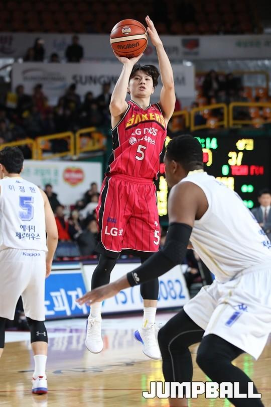 [점프볼=창원/김병문 기자] 17일 창원실내체육관에서 열린 정관장프로농구 KBL2017-2018 시즌 창원 LG와 전주 KCC의 경기, LG 김시래가 슛을 쏘고 있다.