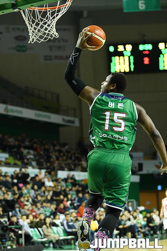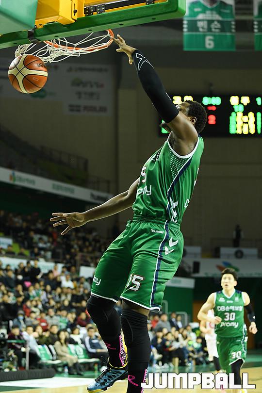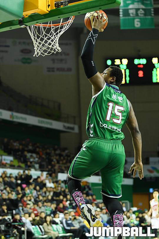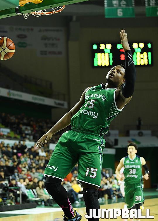 [점프볼=원주/유용우 기자] 18일 원주 종합체육관에서 열린 '2017-2018 정관장 프로농구' 원주 DB와 고양 오리온의 경기, DB 버튼이 360도 덩크를 성공시키고 있다.