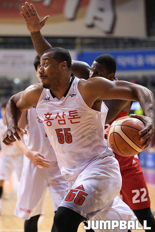 [점프볼=고양/유용우 기자] 20일 고양실내체육관에서 열린 '2017-2018 정관장 프로농구' 고양 오리온과 안양 KGC 인삼공사의 경기, KGC 사이먼이 골밑으로 돌격하고 있다.