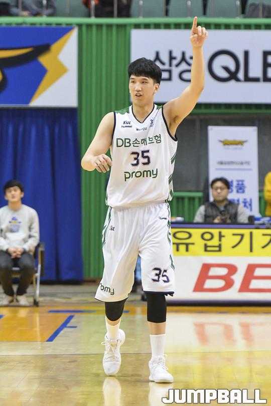[점프볼=잠실/홍기웅 기자] 20일 잠실실내체육관에서 열린 '2017-2018 정관장 프로농구' 서울 삼성과 원주 DB의 경기. DB 서민수가 3점 슛을 던져 득점후 세레모니를 하고 있다.