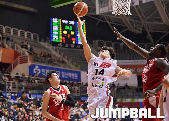 [점프볼=고양/유용우 기자] 21일 고양실내체육관에서 열린 '2017-2018 정관장 프로농구' 고양 오리온과 부산 KT의 경기, KT 박상오가 공격을 득점으로 연결하고 있다.