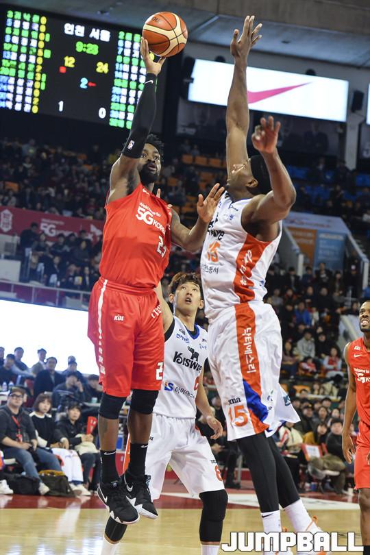[점프볼=잠실/홍기웅 기자] 21일 잠실학생체육관에서 열린 '2017-2018 정관장 프로농구' 서울 SK와 인천 전자랜드의 경기에서 서울 SK가 4쿼터 집중 끝에 애런 헤인즈의 역전 슛과 최준용의 클러치 3점 슛으로 승리를 거뒀다. 서울 SK와 인천 전자랜드의 경기화보.