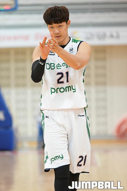 [점프볼=고양/유용우 기자] 22일 고양 실내체육관에서 열린 '2017-2018 KBL D리그' 2차대회 원주 DB와 서울 SK의 경기, DB 윤성원이 동료들의 플레이에 박수를 보내고 있다.