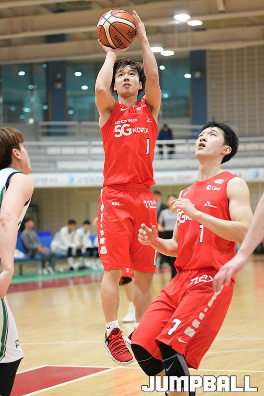 [점프볼=고양/유용우 기자] 22일 고양 실내체육관에서 열린 '2017-2018 KBL D리그' 2차대회 원주 DB와 서울 SK의 경기, SK 김준성이 슛을 성공시키고 있다.