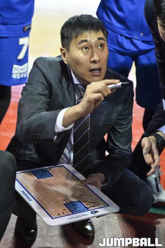 [점프볼=잠실/홍기웅 기자] 24일 잠실학생체육관에서 열린 '2017-2018 정관장 프로농구' 서울 SK와 서울 삼성의 경기. 삼성 이상민 감독이 작전을 지시하고 있다.
