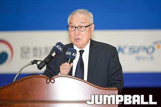 25일 속초시청소년수련관에서 열린 ‘2018 아이패스 YOUTH ELITE CAMP’ KBL 김영기 총재가 참가 선수들에게 인사말을 하고 있다.