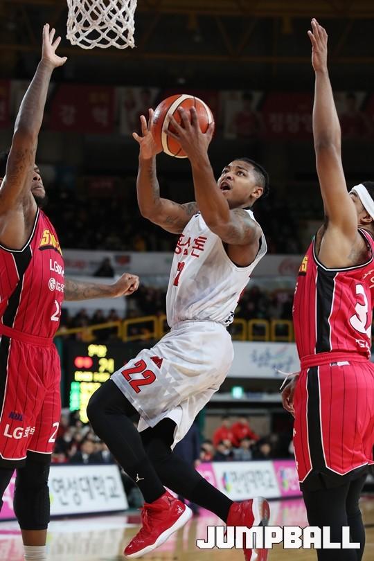 [점프볼=창원/김병문 기자] 25일 창원실내체육관에서 열린 정관장프로농구 KBL2017-2018 시즌 창원 LG 안양 KGC의 경기, KGC 큐제이 피터슨이 레이업 슛을 올리고 있다.