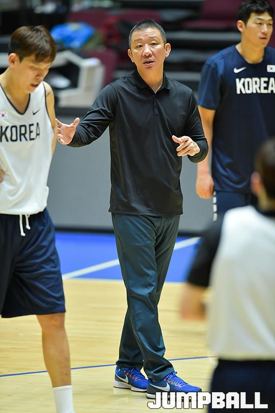 남자농구대표팀 허재 감독이 선수들에게 강화훈련을 실시하고 있다.