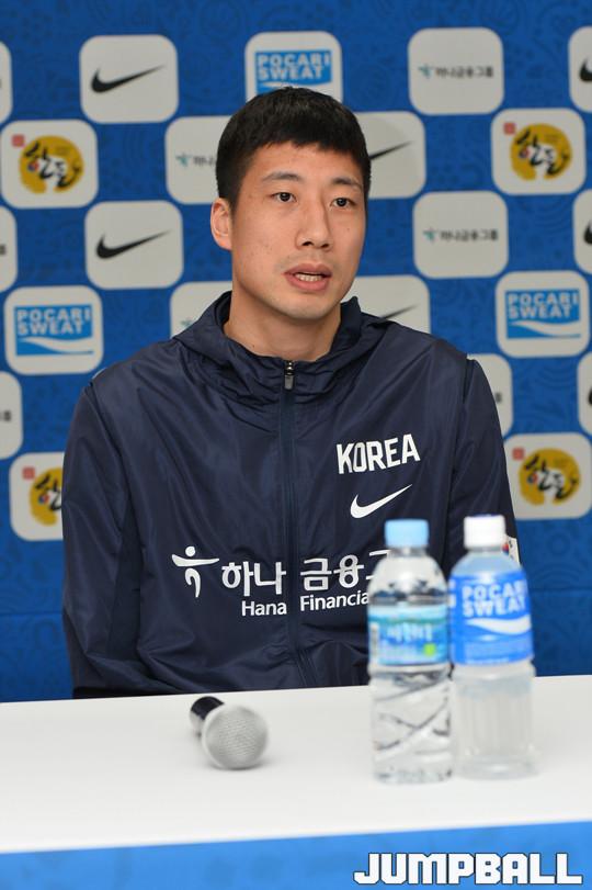 [점프볼=잠실/홍기웅 기자] 22일 잠실실내체육관 미디어컨퍼런스에서 열린 '2019 FIBA 농구 월드컵 아시아-오세아니아 예선전' 한국-홍콩전 기자회견. 양희종이 기자의 질문에 대답을 하고 있다.