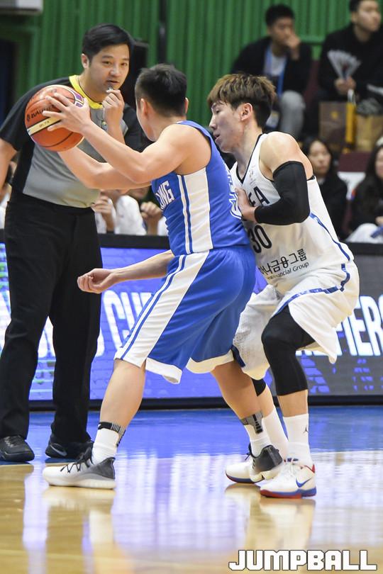 [점프볼=잠실/홍기웅 기자] 23일 잠실실내체육관에서 열린 '2019 FIBA 농구 월드컵 아시아 예선전' 대한민국-홍콩전. 두경민이 홍콩 선수를 밀착 수비를 하고 있다.