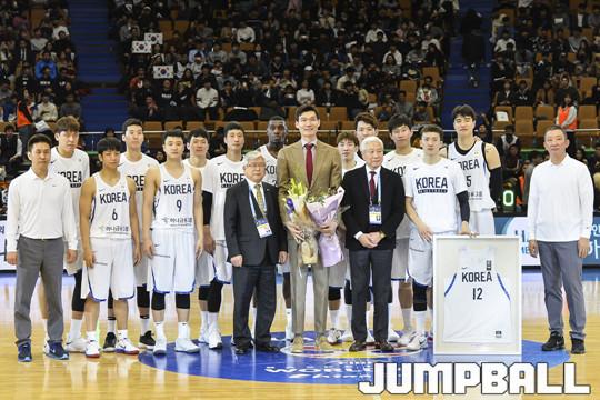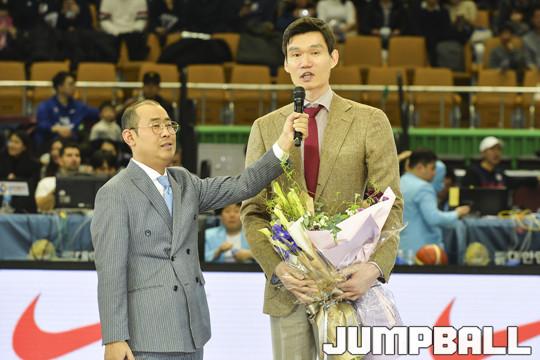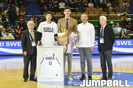 [점프볼=잠실/홍기웅 기자] 23일 잠실실내체육관에서 열린 '2019 FIBA 농구 월드컵 아시아 예선전' 대한민국-홍콩전 하프타임에 국가대표 은퇴식을 가졌다. 김주성 국가대표 은퇴식 화보.