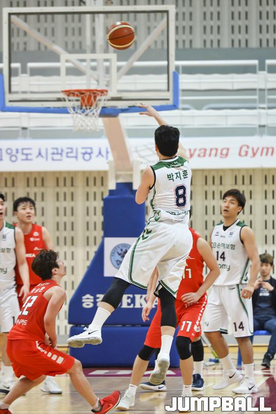 [점프볼=고양/홍기웅 기자] 26일 고양체육관내 보조체육관에서 열린 '2017-2018 KBL D리그' 서울 SK와 원주 DB의 D리그 2차 결승 경기. DB 박지훈이 쿼터 종료되기전 던진 슛이 득점하고 있다.