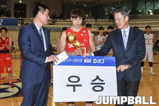 [점프볼=고양/홍기웅 기자] 26일 고양체육관내 보조체육관에서 열린 '2017-2018 KBL D리그' 서울 SK와 원주 DB의 D리그 2차 결승 경기. SK 나이츠가 DB를 상대로 85-77로 승리해 우승을 거뒀다. 서울 SK와 원주 DB의 KBL D리그 2차대회 시상식 화보.