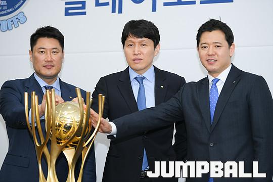 [JB포토] WKBL 17-18 우승 트로피에 손 올린 감독들
