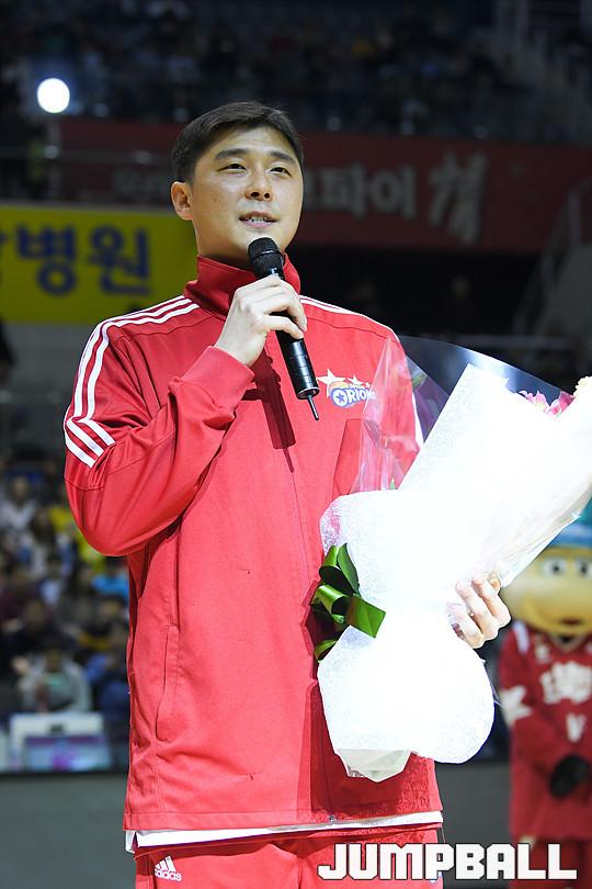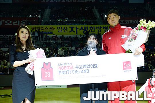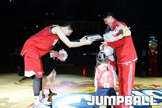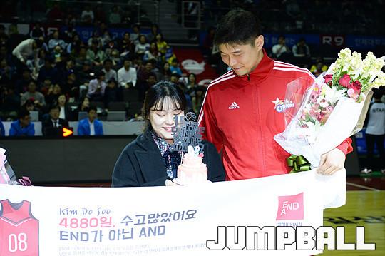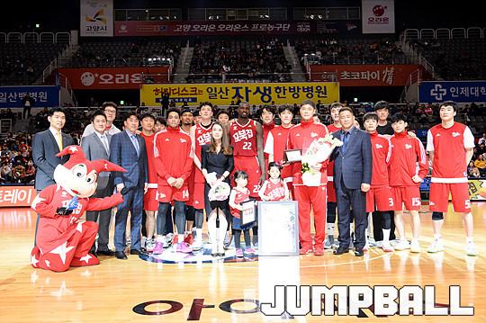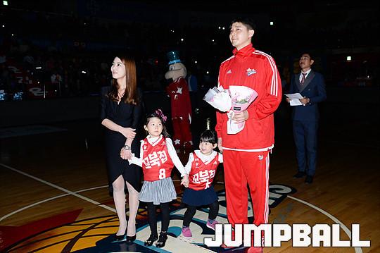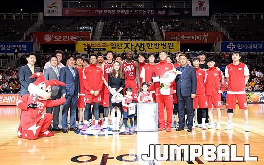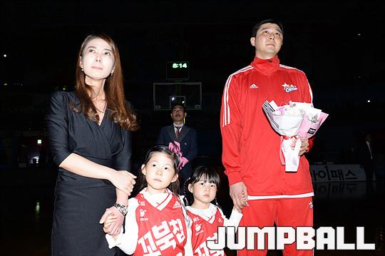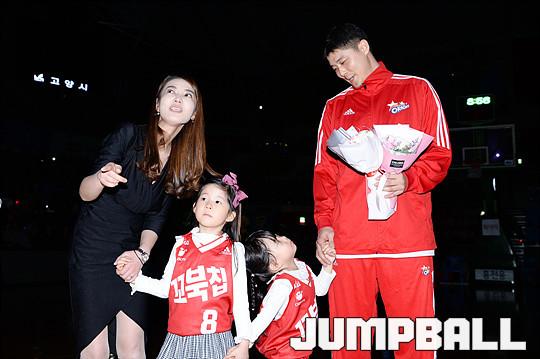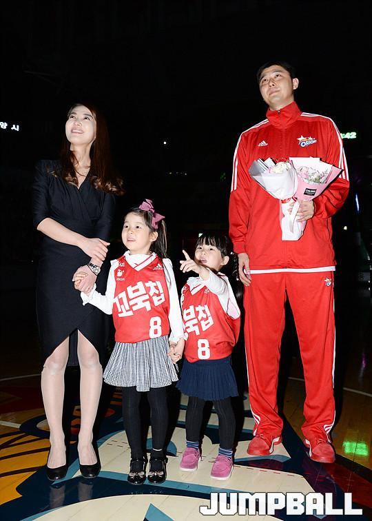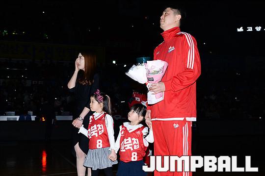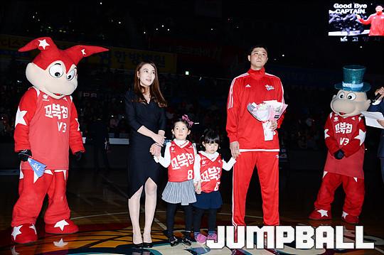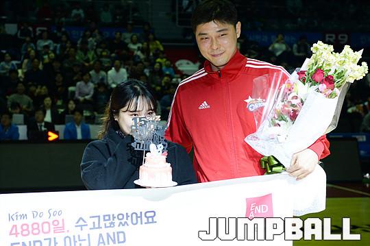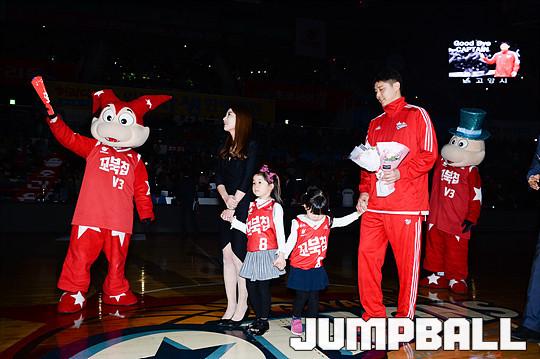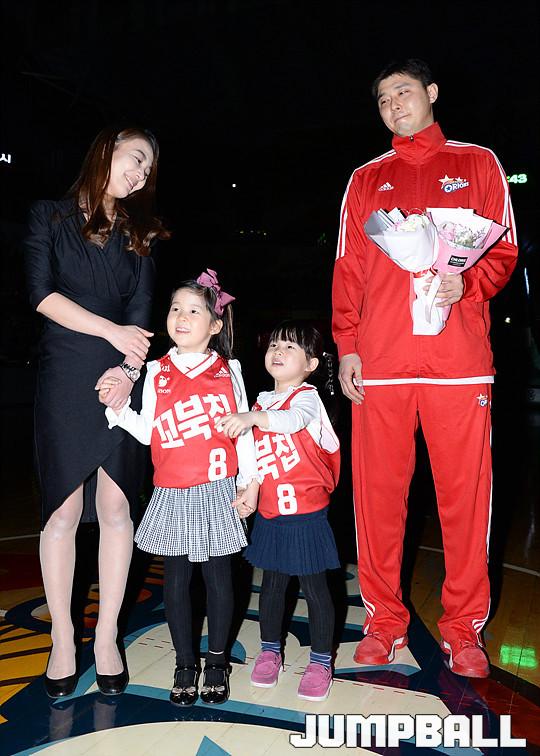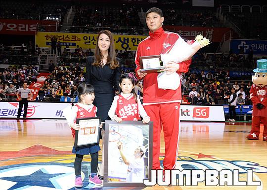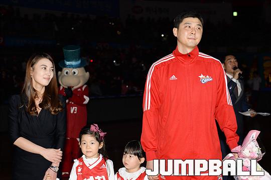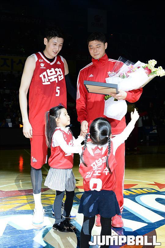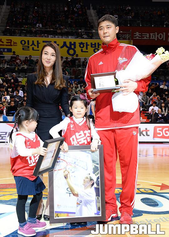 [점프볼=고양/유용우 기자] 10일 고양실내체육관에서 열린 '2017-2018 정관장 프로농구' 고양 오리온과 인천 전자랜드의 경기, 오리온 주장 김도수가 홈 경기 하프타임에 은퇴식을 가졌다. 김도수는 경희대를 졸업하고 2004-2005시즌 전자랜드에서 선수생활을 시작했다. 이날 김도수 선수의 아내와 딸들이 참석해 4880일의 선수생활 마지막을 함께 했다.