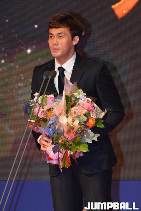 [점프볼=서울/홍기웅 기자] 14일 그랜드 인터컨티넨탈 파르나스 서울 그랜드볼룸에서 열린 '2017-2018 정관장 프로농구 시상식'. DB 김태홍이 기량발전상을 수상하고 있다.