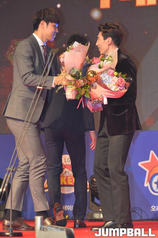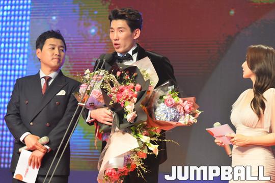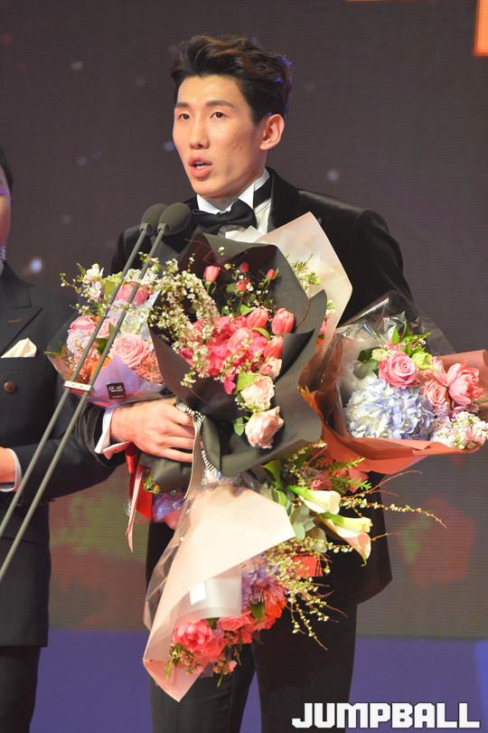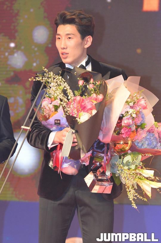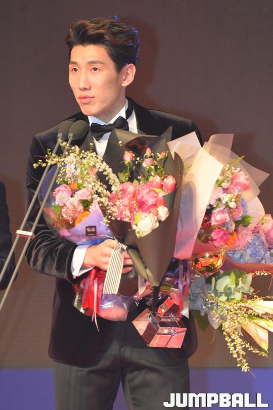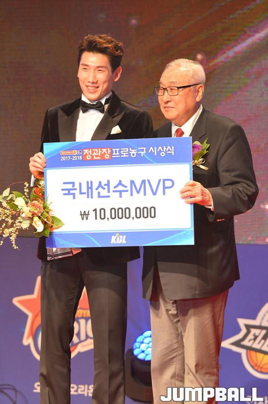 [점프볼=삼성동/홍기웅 기자] 14일 그랜드 인터컨티넨탈 파르나스 서울 그랜드볼룸에서 열린 '2017-2018 정관장 프로농구 시상식'. DB 두경민 '국내선수 MVP'를 수상했다.