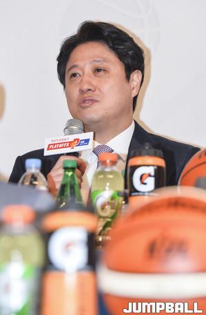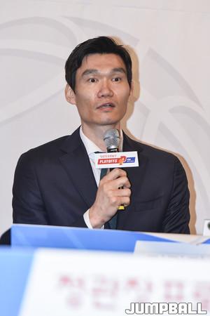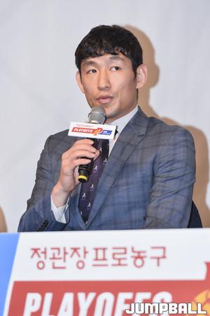 [점프볼=청담동/홍기웅 기자] 15일 서울 청담동 리베라 호텔 베르사유홀에서 열린 '2017-2018 정관장 프로농구 플레이오프 미디어데이'가 열렸다. 플레이오프에 진출한 6팀(DB, SK, KCC, 현대모비스, KGC, 전자랜드)의 감독과 선수가 참석해 미디어 인터뷰를 가졌다. SK 김선형이 각오를 말하고 있다.