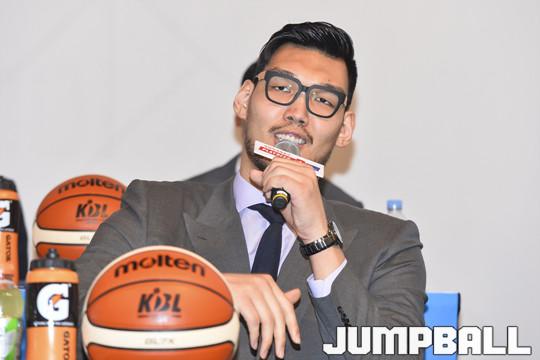[점프볼=청담동/홍기웅 기자] 15일 서울 청담동 리베라 호텔 베르사유홀에서 열린 '2017-2018 정관장 프로농구 플레이오프 미디어데이'가 열렸다. 플레이오프에 진출한 6팀(DB, SK, KCC, 현대모비스, KGC, 전자랜드)의 감독과 선수가 참석해 미디어 인터뷰를 가졌다. KCC 하승진이 6글자 다짐을 말하고 있다.