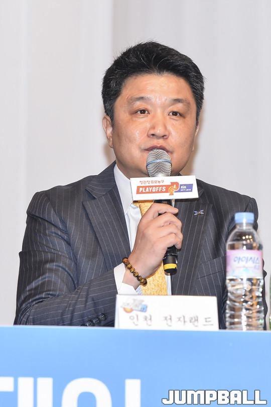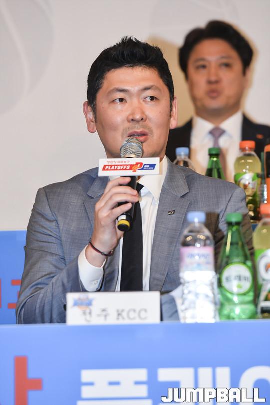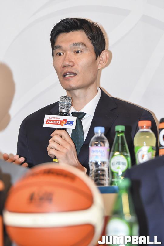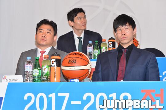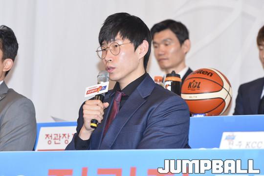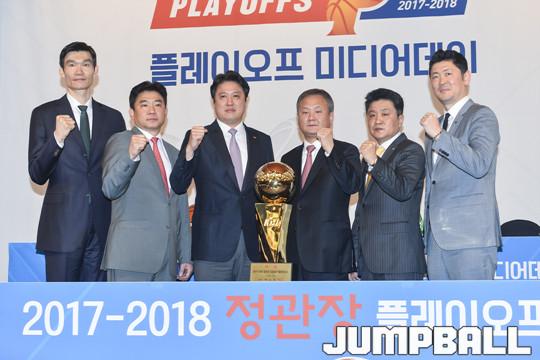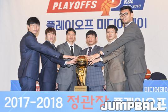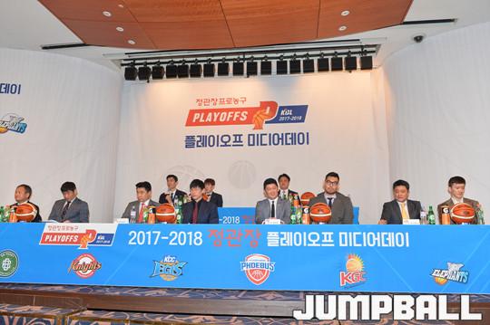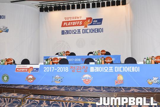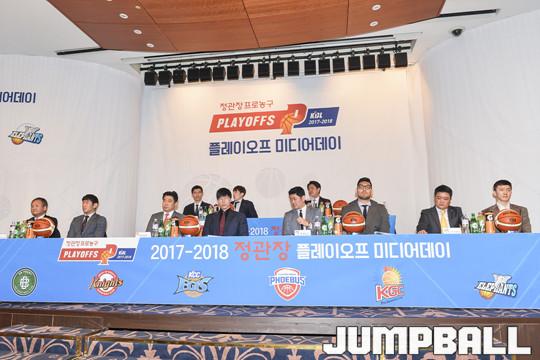[점프볼=청담동/홍기웅 기자] 15일 서울 청담동 리베라 호텔 베르사유홀에서 열린 '2017-2018 정관장 프로농구 플레이오프 미디어데이'가 열렸다. 플레이오프에 진출한 6팀(DB, SK, KCC, 현대모비스, KGC, 전자랜드)의 감독과 선수가 참석해 미디어 인터뷰를 가졌다. '17-18 KBL 플레이오프 미디어데이 화보.