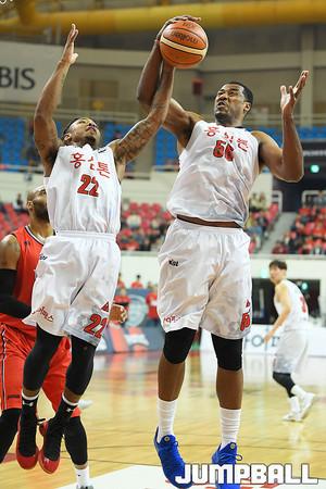 [점프볼=울산/유용우 기자] 17일 울산 동천체육관에서 열린 '2017-2018 정관장 프로농구' 울산 현대모비스와 안양 KGC인삼공사의 6강 플레이오프 1차전, 현대모비스 테리가 리바운드 경합을 벌이고 있다.