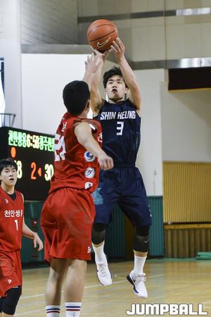 [점프볼=사천/홍기웅 기자] 20일 사천체육관에서 열린 '제55회 춘계 전국 남녀 중고 농구 연맹전' 천안쌍용고와 청주신흥고의 경기. 천안쌍용고 이강민이 더블클러치 슛을 던지고 있다.