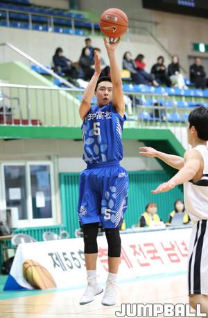 [점프볼=사천/홍기웅 기자] 20일 사천체육관에서 열린 '제55회 춘계 전국 남녀 중고 농구 연맹전' 송도고와 계성고의 경기. 계성고 임태웅이 수비 사이로 슛을 올리고 있다.