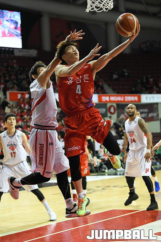 [점프볼=안양/유용우 기자] 23일 안양 실내체육관에서 열린 '2017-2018 정관장 프로농구' 안양 KGC인삼공사와 울산 현대모비스의 6강 플레이오프 4차전, KGC 이재도가 레이업을 올리고 있다.