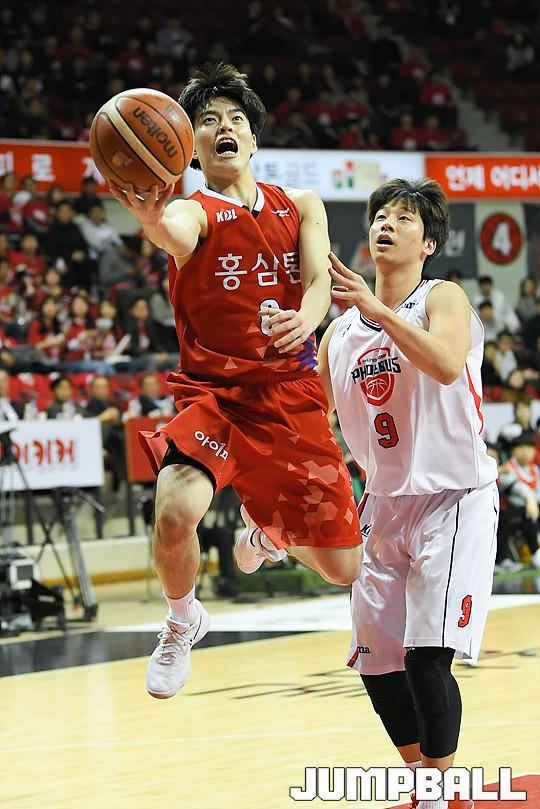 [점프볼=안양/유용우 기자] 23일 안양 실내체육관에서 열린 '2017-2018 정관장 프로농구' 안양 KGC인삼공사와 울산 현대모비스의 6강 플레이오프 4차전, KGC 박재한이 레이업을 올리고 있다.