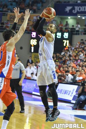 [점프볼=삼산/홍기웅 기자] 24일 인천삼산체육관에서 열린 '2017-2018 정관장 프로농구' 인천 전자랜드와 전주 KCC의 6강 플레이오프 4차전 경기. KCC 안드레 에밋이 점프슛으로 득점에 성공시켜 역전을 시키고 있다.