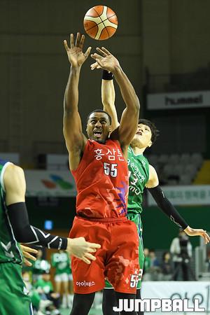 [점프볼=원주/유용우 기자] 28일 원주실내체육관에서 열린 '2017-2018 정관장 프로농구' 원주 DB와 안양 KGC인삼공사의 4강 플레이오프 1차전, KGC 피터슨이 리버스 레이업을 올리고 있다.