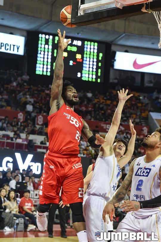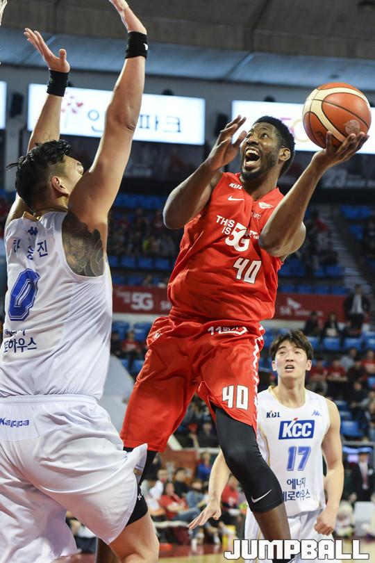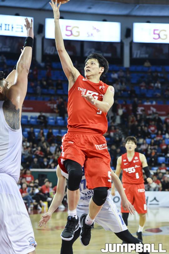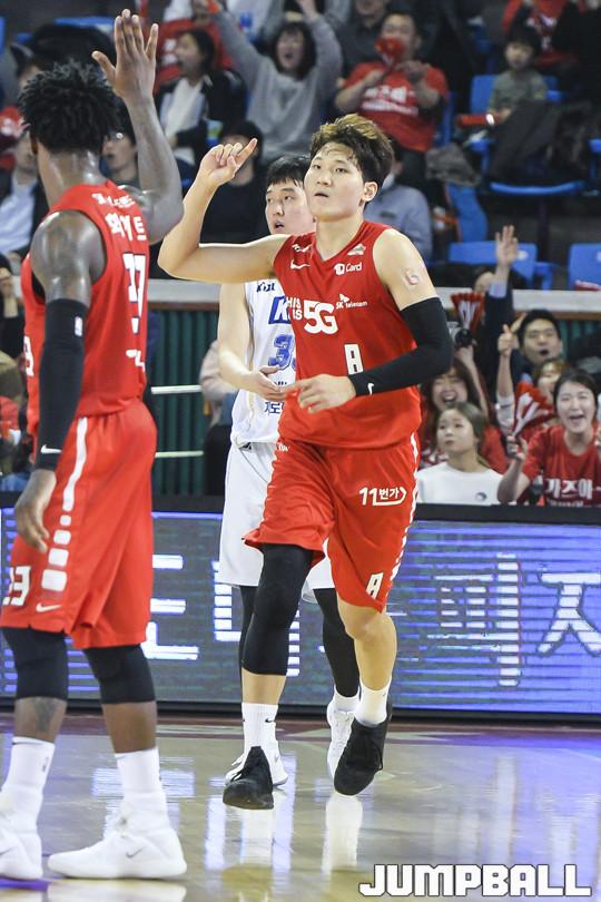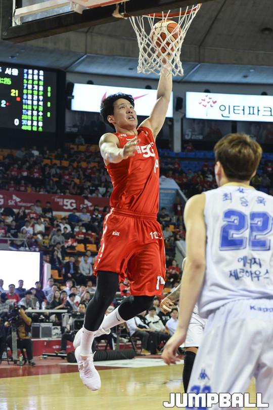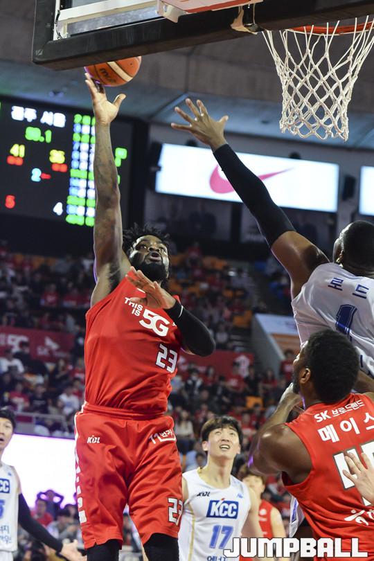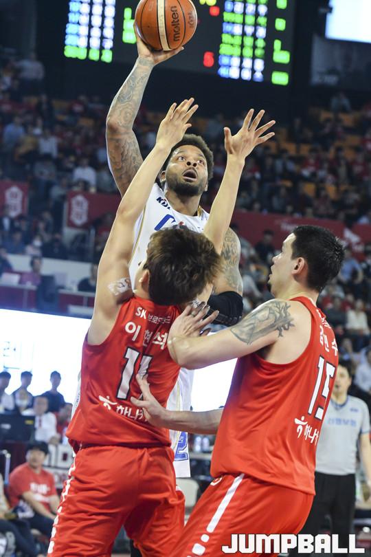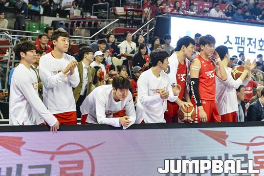 [점프볼=잠실/홍기웅 기자] 29일 잠실학생체육관에서 열린 '2017-2018 정관장 프로농구' 서울 SK와 전주 KCC의 4강 플레이오프 1차전 경기에서 2쿼터까지 득점에서 앞섰던 KCC가 3쿼터에 역전을 허용해 SK가 88-81로 승리를 거뒀다. 서울 SK와 전주 KCC의 4강 플레이오프 1차전 경기화보.