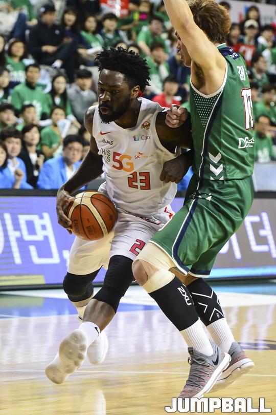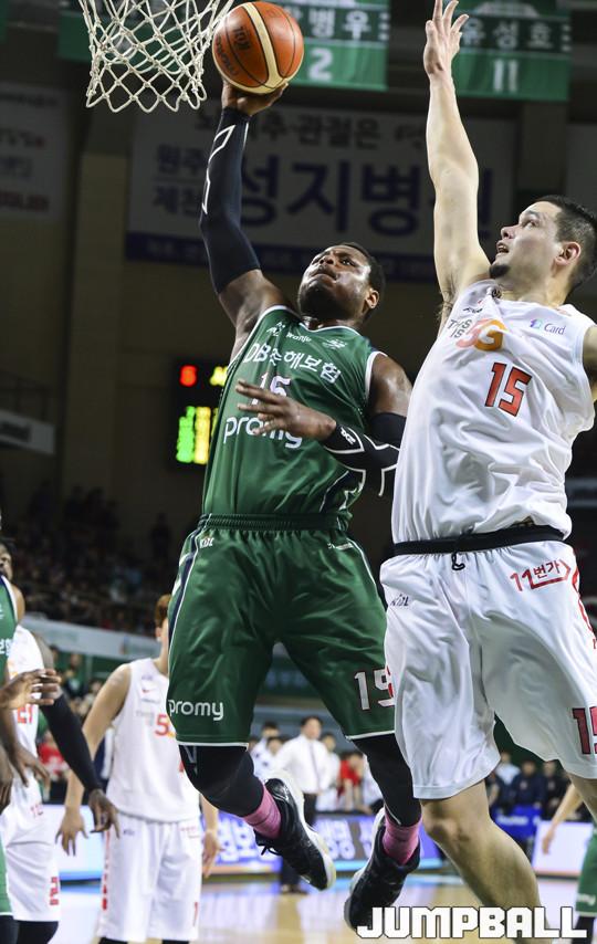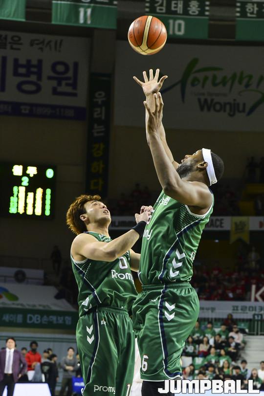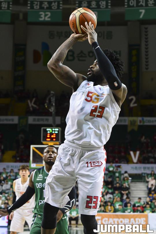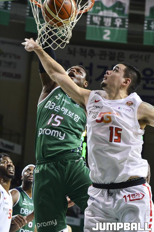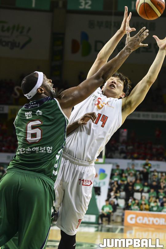 [점프볼=원주/홍기웅 기자] 8일 원주종합체육관에서 열린 '2017-2018 정관장 프로농구' 챔피언결정전 1차전 원주 DB와 서울 SK의 경기에서 4쿼터까지 치열한 경기끝에 디온테 버튼의 끝내기 자유투로 93-90으로 승리를 거뒀다. 원주 DB와 서울 SK의 챔피언결정전 1차전 경기화보.
