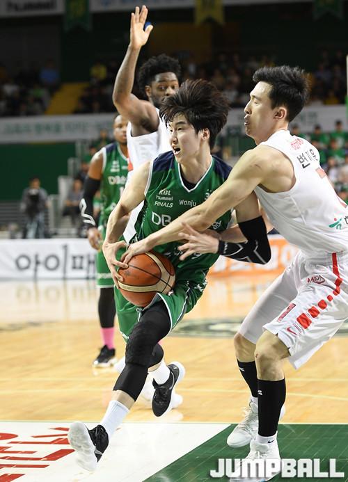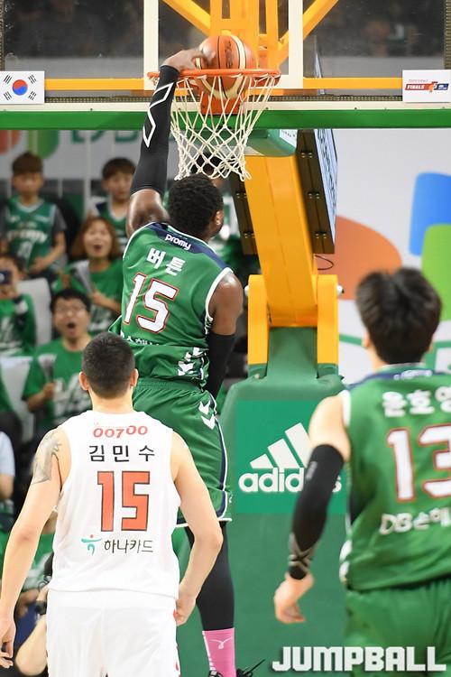 [점프볼=원주/문복주 기자] 원주 DB는 10일 원주종합체육관에서 열린 2017-2018 정관장 프로농구 서울 SK와의 챔피언결정전 2차전에서 94-89로 승리했다. 버튼(39득점 7리바운드 5어시스트)이 3쿼터에만 20득점을 올리며 1차전에 이어 KBL 역대 한 쿼터 최다 득점 타이 기록을 세웠다. 이우정(12득점 3어시스트)과 서민수(11득점 3리바운드)도 2, 3쿼터에 제 역할 이상을 해내며 90%의 확률을 가져왔다.