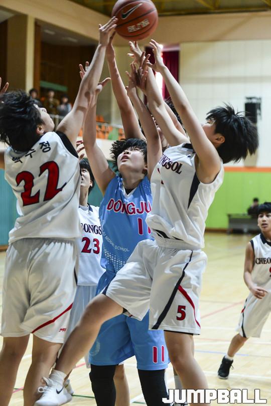 [점프볼=여수/홍기웅 기자] 13일 여수 쌍봉초등학교 육관에서 열린 '제43회 협회장기 전국남녀중고농구 여수대회' 결선 청솔중과 동주여중의 경기에서 청솔중이 54-42로 승리를 거뒀다. 청솔중-동주여중 경기화보.