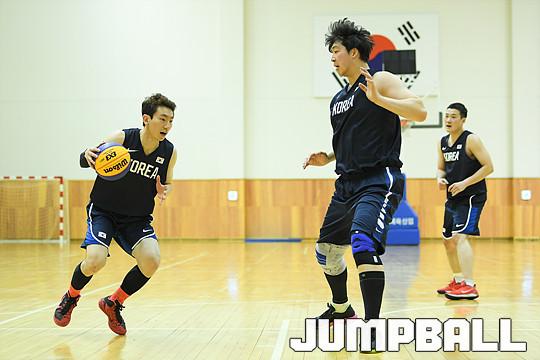 [점프볼=진천/유용우 기자] 19일 FIBA 3x3 아시아컵 2018을 대비해 진천선수촌에서 훈련중인 3x3 국가대표팀의 훈련현장을 찾았다. 17일 대한농구협회는 3x3 국가대표 감독에 정한신 감독을 선임하였다. FIBA 3x3 아시아컵 대표팀(박민수, 방덕원, 김민섭, 임채훈)은 진천선수촌에서 1주일 간의 합숙훈련을 거쳐, 26일 결전의 땅 중국 심천으로 출국한다. 3x3 국가대표팀이 오전 웨이트 트레이닝에 이어 오후 체력훈련과 패턴훈련을 실시하고 있다.