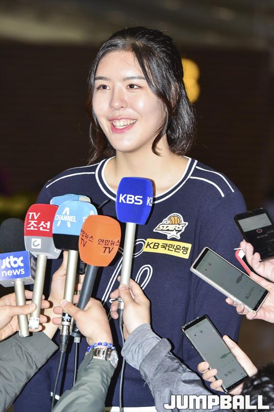 [점프볼=인천공항/홍기웅 기자] 23일 KB 박지수가 WNBA에 도전하기 위해 인천공항 2터미널에서 미국으로 출국했다. 박지수는 WNBA 신인드래프트에서 2라운드 5순위로 미네소타 링스에 지명받았고, 드래프트 후 라스베이거스 에이시스로 트레이드 됐다. KB 박지수가 언론사 인터뷰에 응해 답하고 있다.