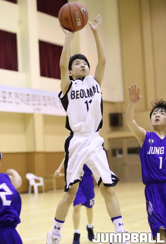 26일 전남 영광 스포디움 국민체육센터 보조 체육관에서 계속된 제17회 전국초등학교농구대회 남초부 예선전, 우승 후보 벌말초교가 89-40으로 청주 중앙초교에 승리 했다