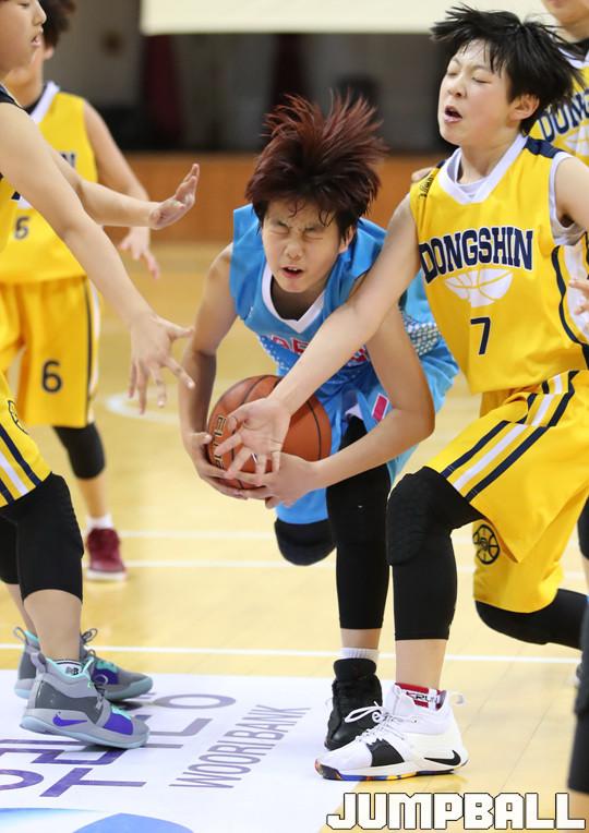 26일 전남 영광 스포디움 국민체육센터 에서 계속된 제17회 전국초등학교농구대회 여초부 예선전 경기, 부산 대신초교가 종료 직전 터진 김민주의 천금같은 골밑슛에 힘입어 19-18로 온양 동신초교에 역전승 했다.