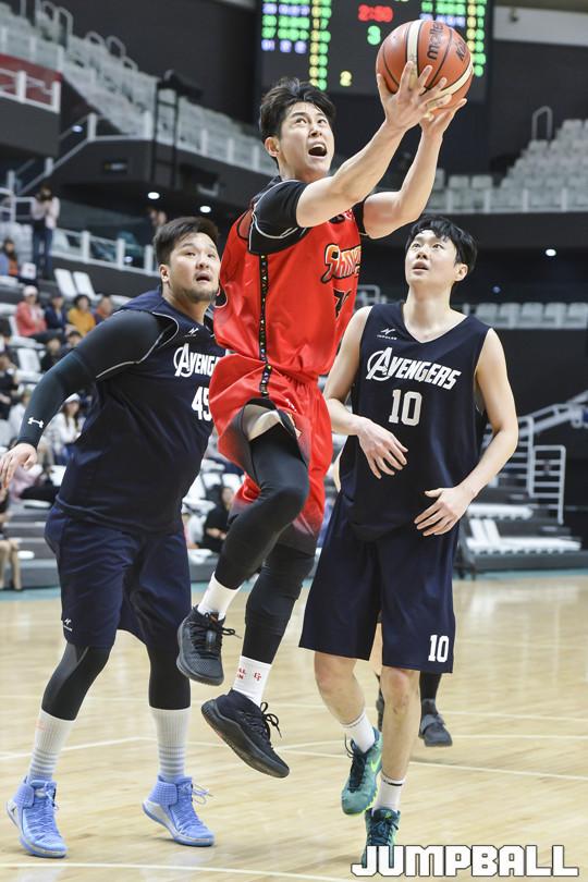 [점프볼=수원/홍기웅 기자] 4일 서수원 칠보체육관에서 열린 NGO 굿피플과 함께하는 KCBL 연예인 농구대회 어벤져스와 신영이엔씨의 결승 경기. 신영이엔씨 김광태가 레이업을 올리고 있다.