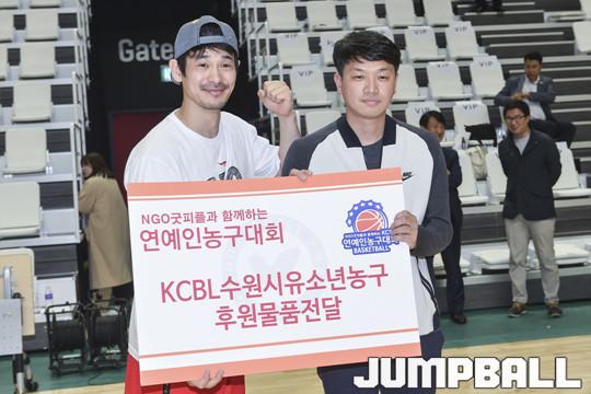 [점프볼=수원/홍기웅 기자] 4일 서수원 칠보체육관에서 열린 NGO 굿피플과 함께하는 KCBL 연예인 농구대회에서 신영이엔씨가 우승, 어벤져스가 준우승을 거뒀다. 우승팀 MVP에 채경선이 선정되고 베스트 5에는 박진영, 정진운, 채경선, 오승훈, 김태우가 선정됐다. 올스타전 MVP로는 박광재와 정진운이 선정됐다. KCBL 연예인 농구리그 시상식 화보.