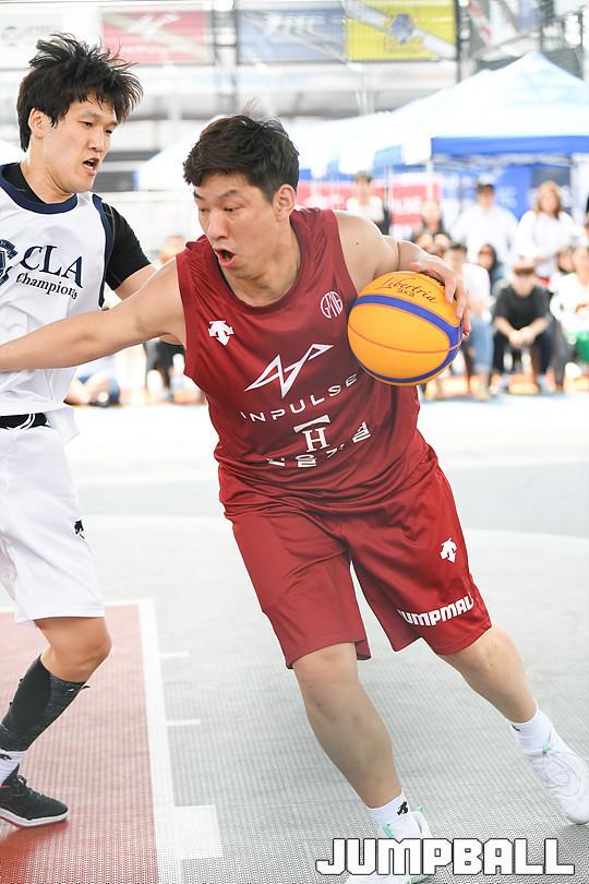 [점프볼=고양/유용우 기자] 5일 스타필드 고양점 스포츠몬스터 루프탑에 위치한 코트M에서 KOREA 3x3 프리미어리그가 개막했다. 일본에 이어 아시아 2번째 3x3 프로리그인 프리미어리그는 ISE, 데상트, 인펄스, CLA, PEC와 일본 3x3 리그 소속 오이타 스탬피드가 참가한다. 인펄스 전상용이 공격을 시도하고 있다.